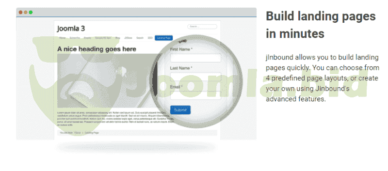 jInbound allows you to build landing pages quickly. You can choose from 4 predefined page layouts, or create your own using Jinbound's advanced features.