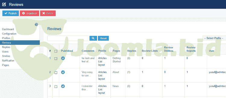 - vReview allows to set various email notifications to admin e.g. Enable Like/Dislike Notification to admin, Enable/Disable Comment Notification to admin, Enable/Disable Report Notification to admin.