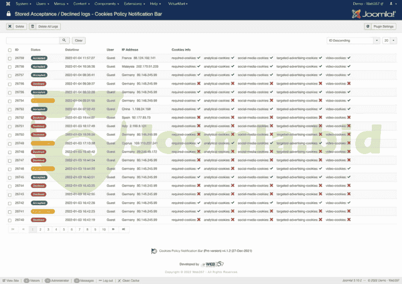 - Store User's consent into the Database (Functionality to record and store visitor's consent (this record is not considered a personal data). We storing only the user IP Address and the date/time of acceptance. GDPR Rules!) [NEW FEATURE in v3.3.0]