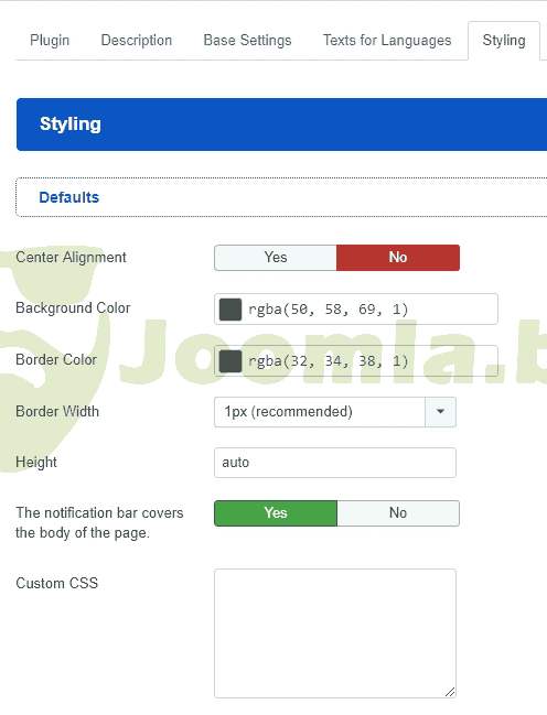 - Body Cover (Choose if you want to allow the notification bar cover the body of the page) NEW