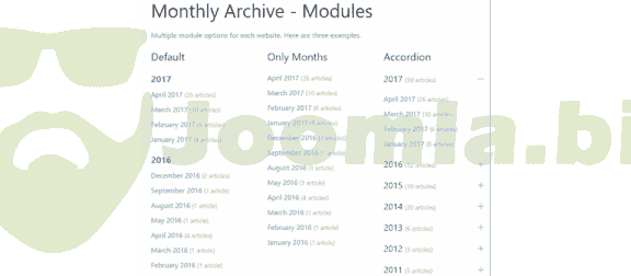 The Monthly Archive Joomla! component provides a list of Joomla or K2 content divided into months and years. It is supplied with a lot of features and multiple parameters, improves user navigation and works as a search tool too. It is great for blogs, news portals, journalists, authors, speakers, and any other content based website.