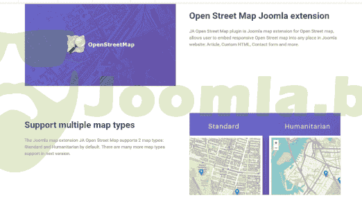 The Joomla map extension JA Open Street Map supports 2 map types: Standard and Humanitarian by default. There are many more map types support in next version.