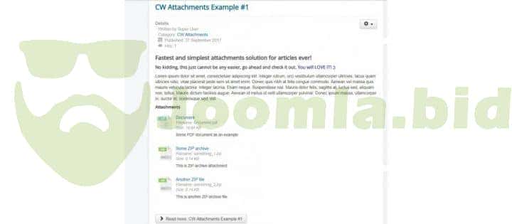 Fast and Simple Attachments for Joomla Articles. Drag and drop upload and sorting files right in the Article Edit form page. Very easy to use and effective way to manage documents and attachments for Joomla Articles. You will love it!