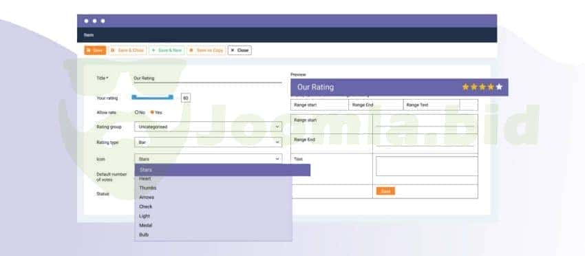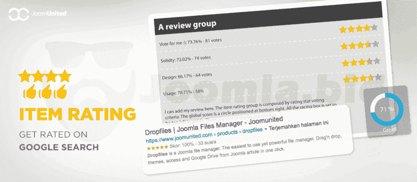 Frontend rating is also a possibility. More than that, Item rating got also a powerful voting restriction: you can allow vote only from backend, from frontend, from both, allow only certain Joomla user group. All the possibility are covered, only voting from backend, only from frontend or match both to determine a global score. We were just saving the best for last, it works with rich snippet review microdata (to make appear star in search results).