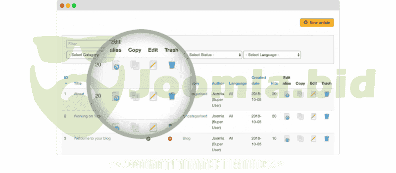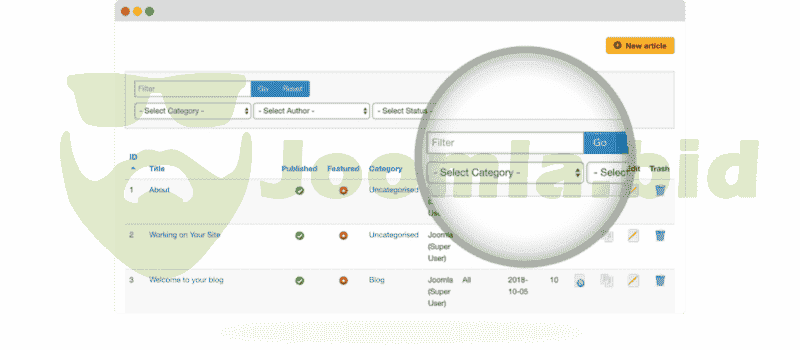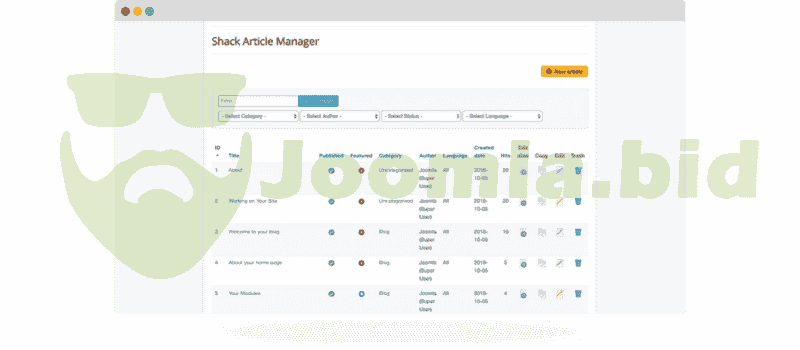 With Shack Article Manager, all authors have access to all their Joomla articles. You can see all the articles on a single, easy-to-use screen.