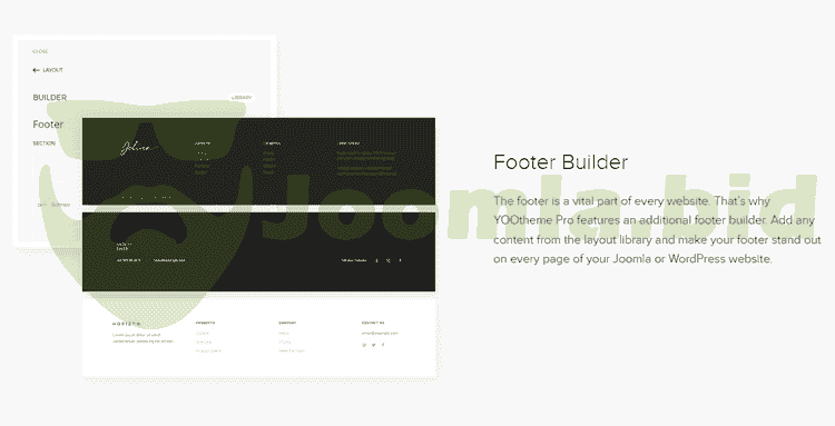 The footer is a vital part of every website. That’s why YOOtheme Pro features an additional footer builder. Add any content from the layout library and make your footer stand out on every page of your Joomla or WordPress website.