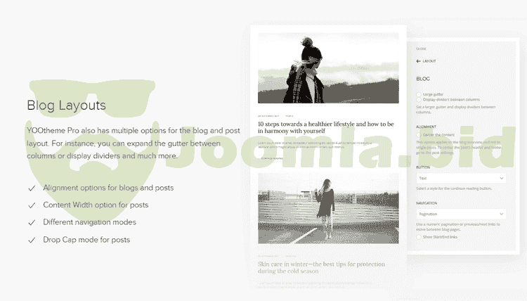 YOOtheme Pro also has multiple options for the blog and post layout. For instance, you can expand the gutter between columns or display dividers and much more.