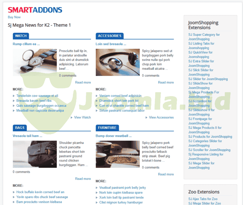 SJ Mega K2 News Module is a great module for K2 Component. The most of sites need this module on the frontpage. Please see the demo site to have a closer look. With 3 themes and a lot of options, i am sure that you will enjoy it.