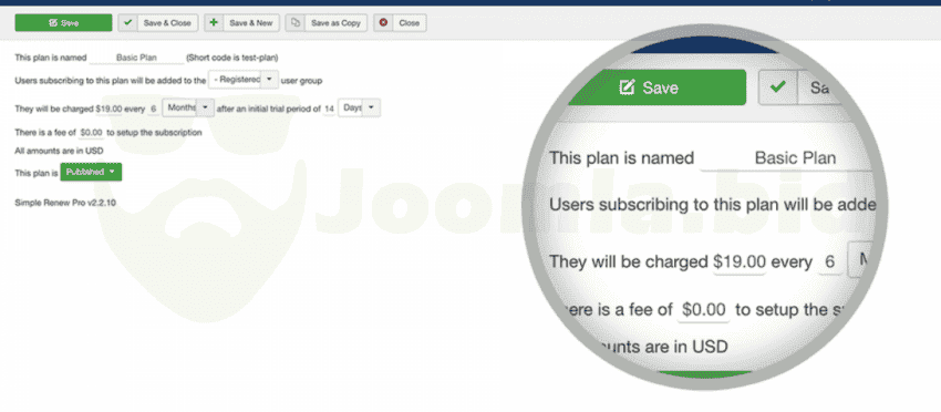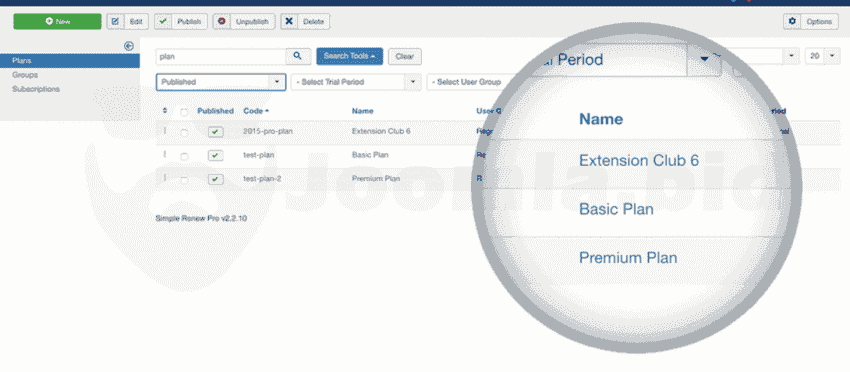 You can create and edit your plans directly on your Joomla backend. The settings are synchronized with Recurly.