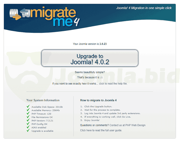 his is an all-in-one solution that will install a fresh version of Joomla 4, *migrate* all your extensions, documents, articles, settings, users, passwords - EVERYTHING...