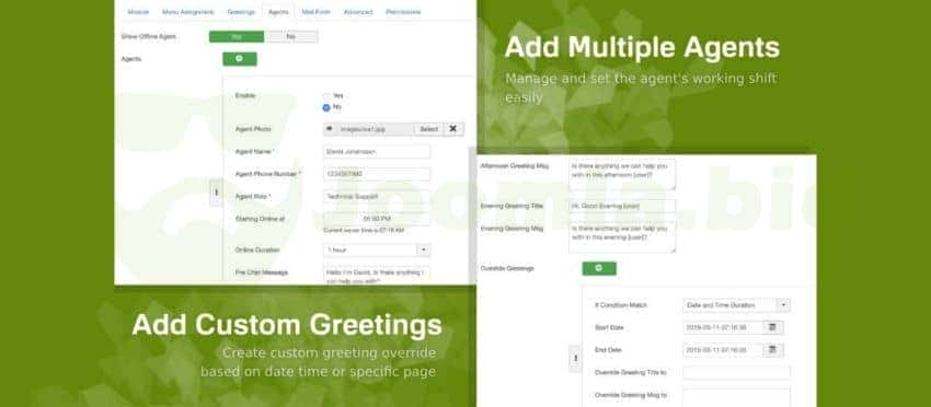 - No boring greeting message. Set a personal greeting message to your visitor, based on defined date and time and also what page their visit.