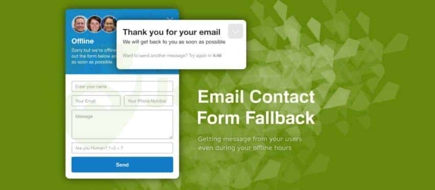 - Email Form Fallback. Getting message from your customers even during your support agent’s offline hours. A mail contact form will be displayed when all agents are offline