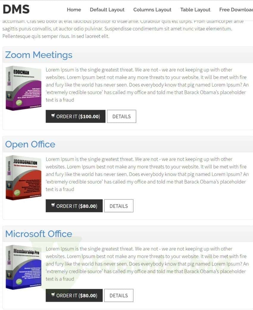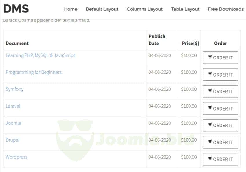 Documents Seller (aka DMS) is a Joomla 3.x/Joomla 4.x extension developed by Ossolution Team to allow selling your downloadable products : Documents, Ebooks, Softwares, Joomla extensions, Joomla templates and get paid via Paypal, Authorize.net, Eway, MoneyBooker and Offline payment payment gateway. It also allows your site members to upload and sell their own documents (If you turn on this feature) on your site.