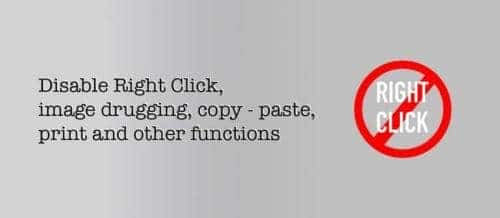 In module settings is optional to disable Right Click for all page or only for images, image drugging and keyboard shortcut keys "Ctrl + A", "Ctrl + C", "Ctrl + V", "Ctrl + P", "Ctrl + S" , "Ctrl + U", F12