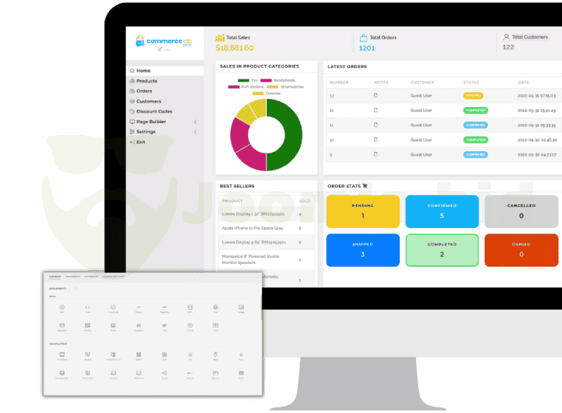 Sell any products online with CommerceLab Shop! eCommerce has never been easier, faster, or more scalable than now. Built to be used with YOOtheme Pro, your online store can be truly limitless. eCommerce for Joomla jut got exciting! Design with clicks — No coding required. Push the limits of web design and create unique commerce designs for your customers. Build a business around any type of product.