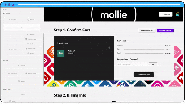 Drag and drop checkout elements and create a fun look that your shoppers will appreciate.