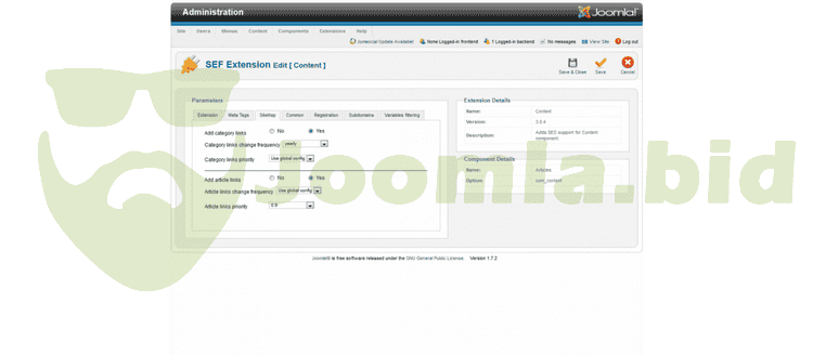 SEO component to make your Joomla! URLs SEF (search engine friendly) and easily human understandable with metadata generation capabilities. Supports URL translations at multilingual sites using JoomFish/Falang. Online upgrades and extension instalation. Custom 404 Page Not Found, duplicate URLs management. Having SEF URLs means more comfort for users and better ranking with search engines.