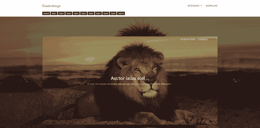 In Universal Slider for articles are included ten different unique styles. Check all styles in the demo page.