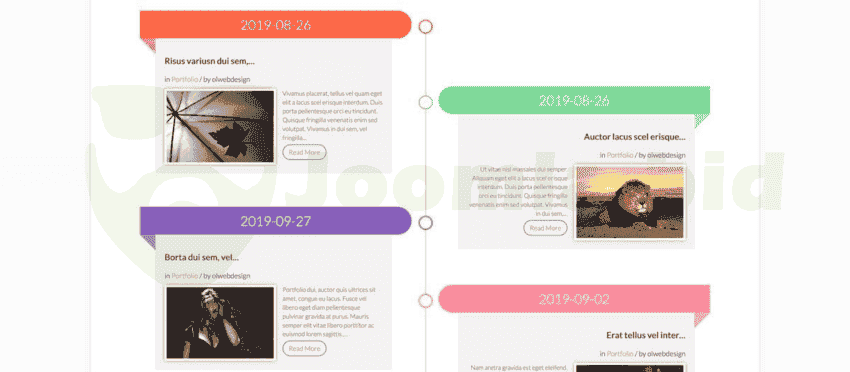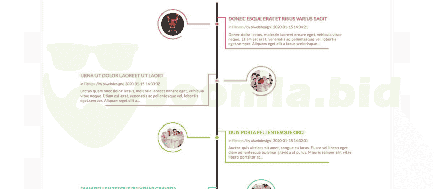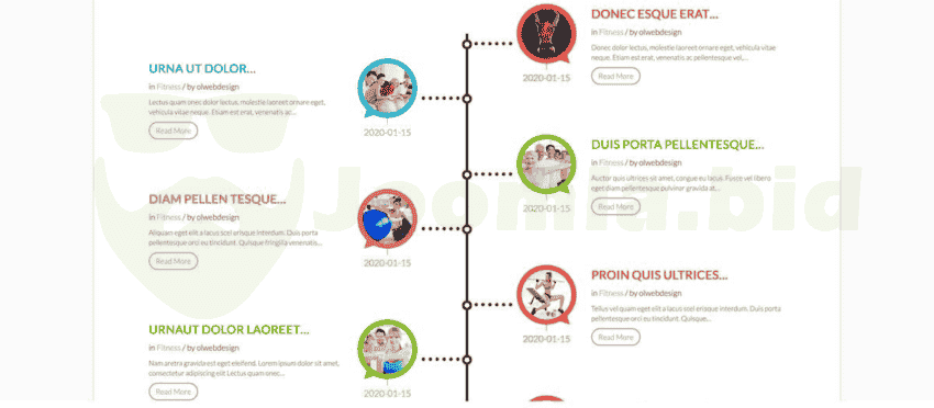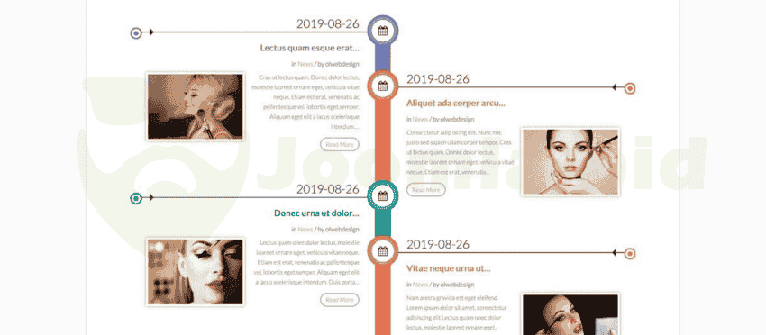 Create a vertical timeline of your articles using ol Timeline module. It is fully responsive with many styles. Timeline responsive Joomla extension allows you to show photos and text from articles ( one or many categories ) on a vertical or horizontal timeline. Available in twelve styles: default and style one, style two, style three, style four, style five, style six, style seven, style eight, style nine, style ten, style 12 and horizontal.