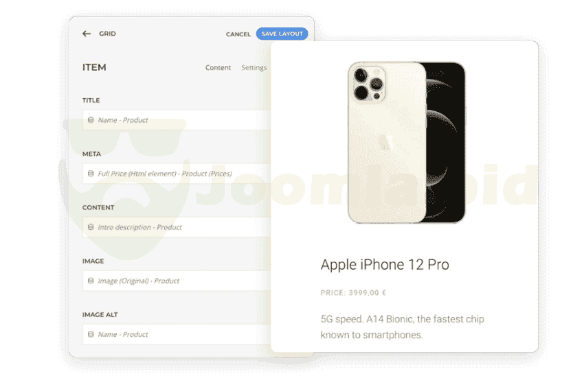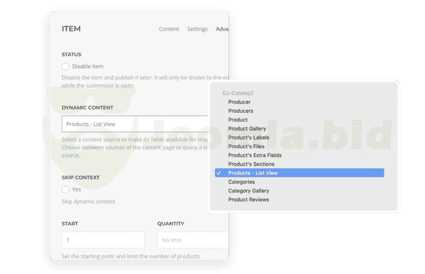 - Full YOOtheme integration Enjoy all the YOOtheme PRO options like elements or dynamic content and use them in DJ-Catalog2 views.