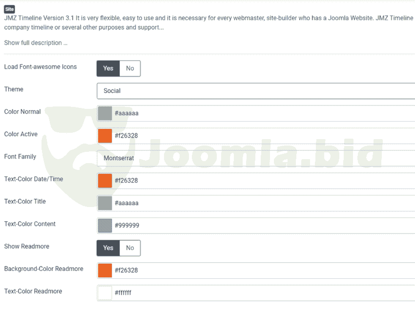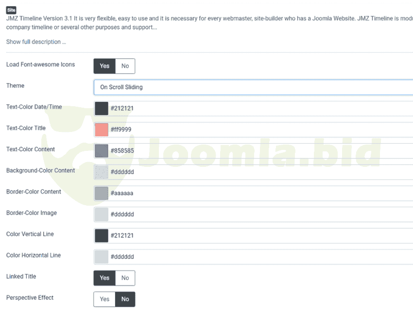 Module timeline joomla allows you show your company timeline or several other purposes on a vertical line. It is very flexible, easy to use and it is necessary for every webmaster, site-builder who has a Joomla Website, support highly-configurable their events (Customizable colors, images, icon, readmore button...). Build a constructive site and make your site become even friendlier with users.