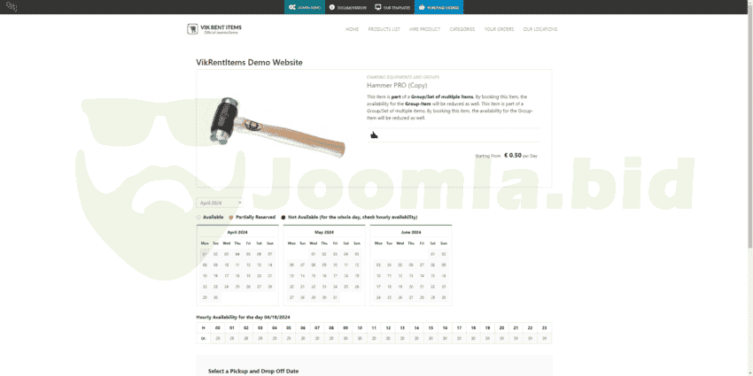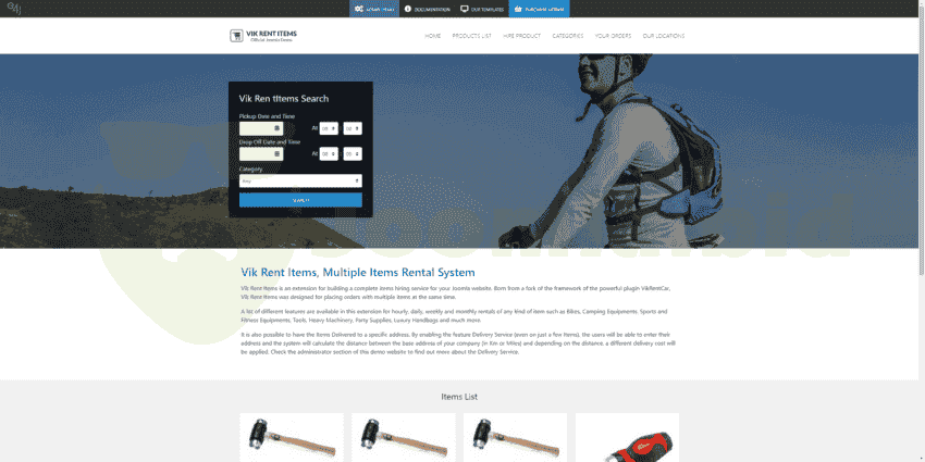 Vik Rent Items is an extension designed for building a complete hiring system of any kind of item. Rentals of multiple or single items are allowed, with or without quantities. Designed with a powerful and flexible rates management system that perfectly suits all the needs for Bikes, Tools, Heavy Machinery, Camping Equipment, Inflatables, Sports and Fitness Equipments, Party Supplies, Luxury Clothing, Handbags or Accessories and others hiring services.