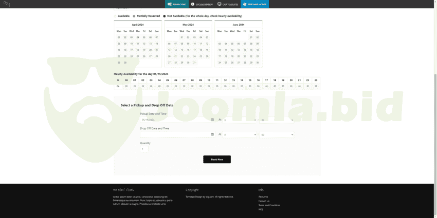 - Front-End Availability Calendar (Daily and Hourly) for each Item