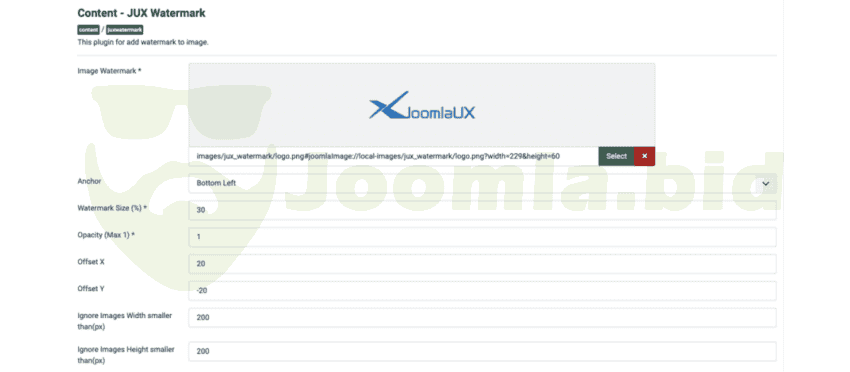 JUX Watermark Joomla Extension: Effortless Branding and Image Protection Across Every Element Elevate your Joomla website's visual appeal and protect your valuable images seamlessly with the JUX Watermark extension. This powerful tool empowers users to add logos or images to their visuals across articles, modules, and components, ensuring a consistent and professional presentation throughout the entire Joomla ecosystem.