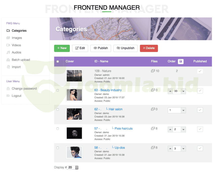 FW Gallery is a simple, beautiful, responsive and functional free gallery for Joomla! Optimized image load, unlimited sub-galleries, drag&drop upload, social sharing, flexible grid, watermark and more. Responsive media (images, video, audio) file gallery with drag & drop files upload, multi-level sub-categories, tags, slideshow, Instagram and FTP import and many other add-ons.
