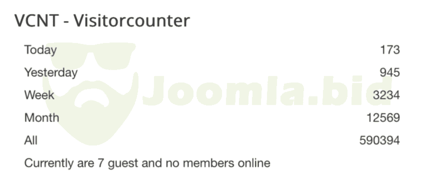 Small, fast and reliable visitor counter module for Joomla! with many features! VCNT identifies and counts visitors via the IP address. Bots can be detected and excluded over the user agent header. Note: No personal data is stored.