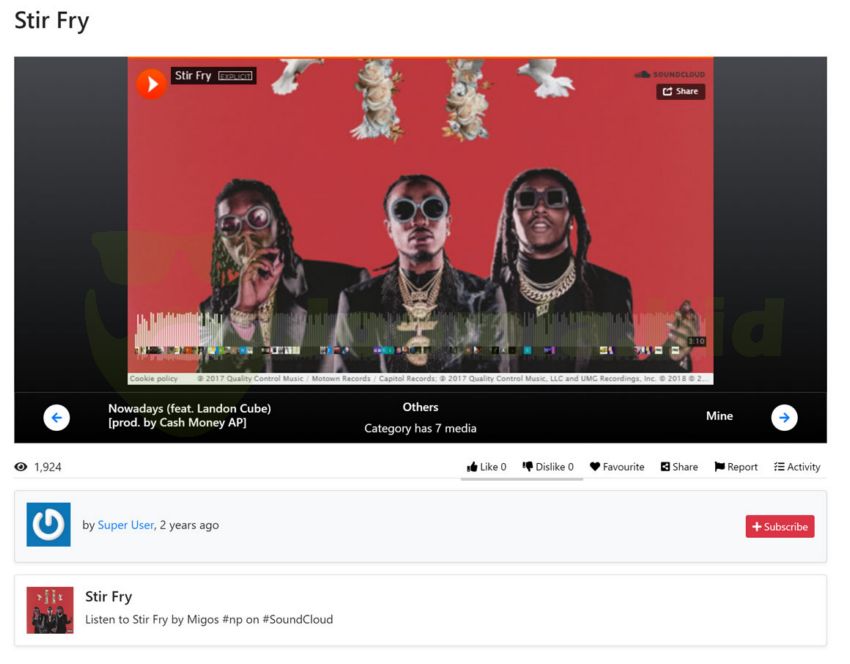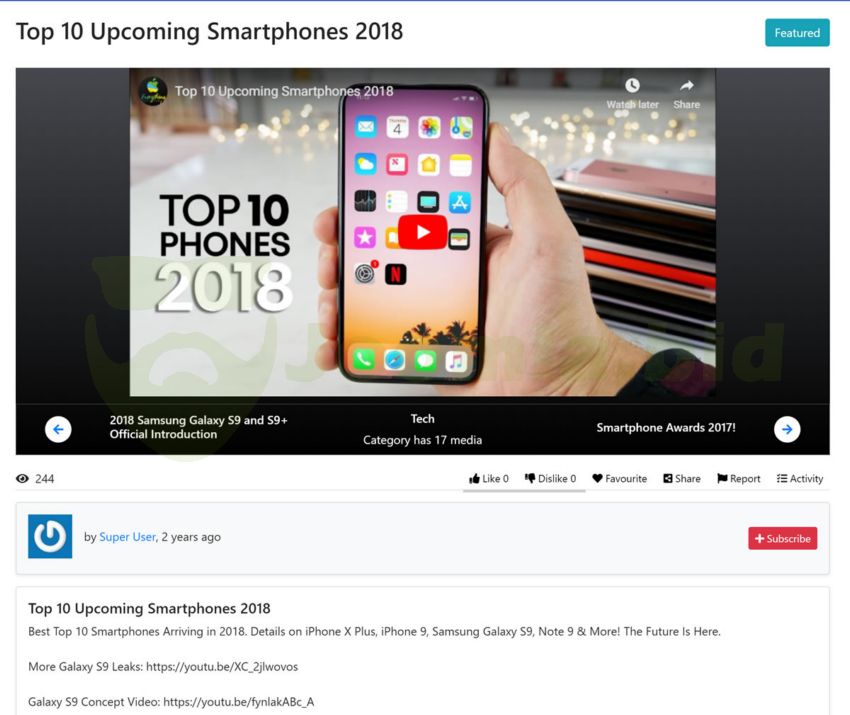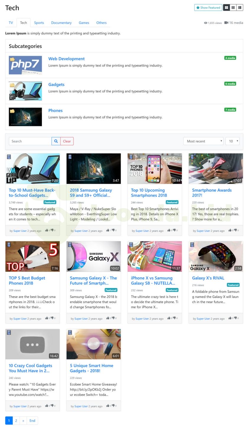 - Media items organization true categories, tags, channels, playlists, albums and groups
