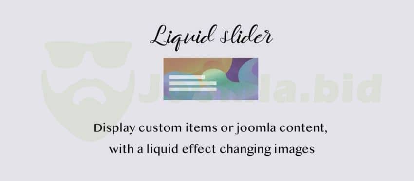 Liquid slider joomla module displays custom items or content, with a liquid effect changing images.