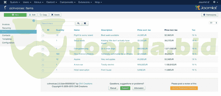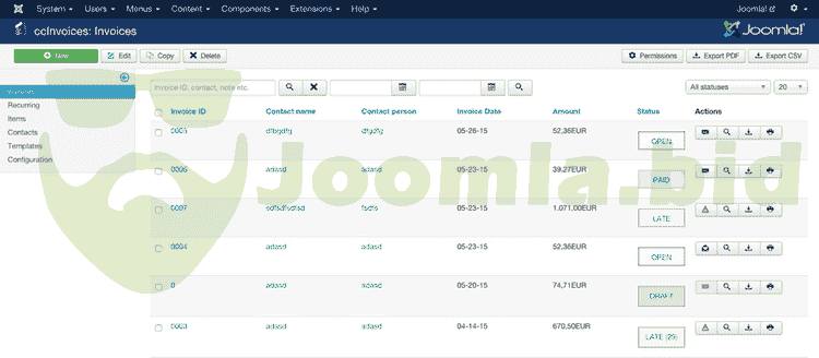 With the most user friendly Joomla! invoicing extension, create and manage PDF invoices directly from the administrator of any Joomla! website. The easiest way to create and manage invoices in Joomla! No complicated invoice systems, spreadsheets, monthly costs or annoying accountants. Just complete control in an easy and familiar interface. Easy to use invoicing extension for Joomla! websites. Create and send invoices in Joomla and receive payments via Stripe, PayPal and Mollie.