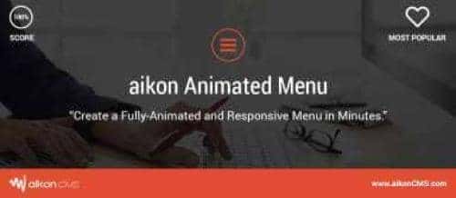 The Menu You Have Always Wanted – Now Available With Ease: aikon Animated Menu helps you create modern responsive and beautiful menus that are both easy and affordable. Featuring lots of animations such as transparency, height change and scroll reveal, as well as extras – search bars, social share icons and full design and layout control – you'll never need another menu extension or template again.