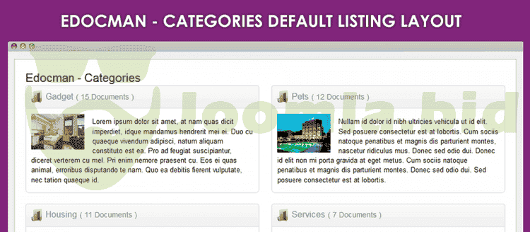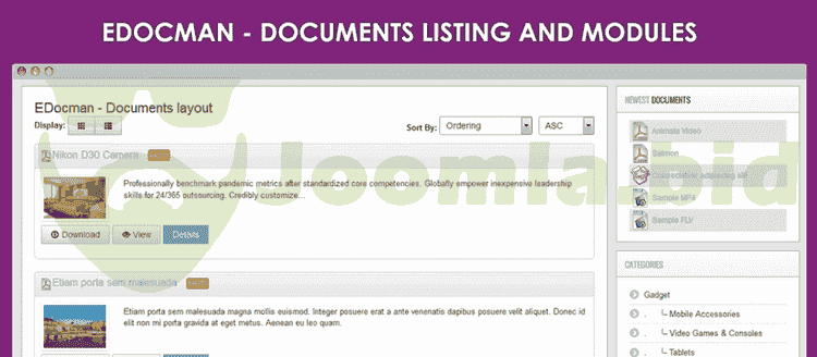 - EDocman Documents Category plugin allows display all documents of a category in a Joomla article.