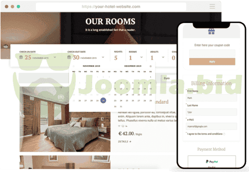 VikBooking is an Independent Booking Engine (IBE) for Joomla designed for single property accommodation businesses. Currently the only Joomla Hotel Booking extension to be certified by TripAdvisor, it perfectly fits all the needs that Hotels, Bed & Breakfasts, Hostels and Apartments, Camp Sites etc... have. Build your rooms booking website with VikBooking. No other similar extensions can offer what VikBooking does!
