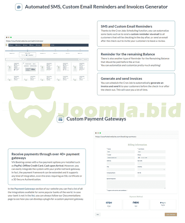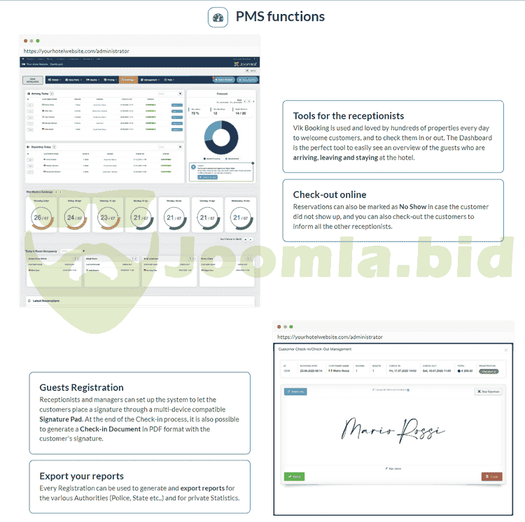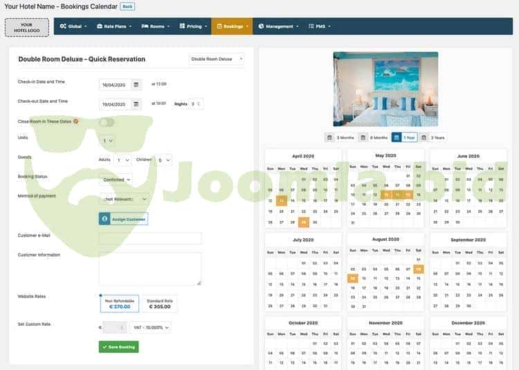 Start collecting direct bookings from your own Hotel website Vik Booking: the Booking Engine and PMS plugin for Hotels and Accommodations on Joomla Become independent with a solution fully integrated with your Joomla website. No recurring fees or commissions applied.