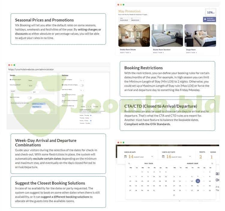 - Restrictions for setting minimum and maximum length of stay in some months or dates of the year