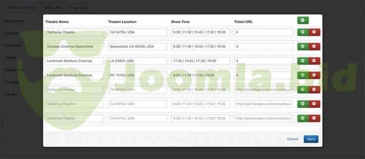- Movie Showtime’s (Theatre Name, Location, Time, Ticket URL)