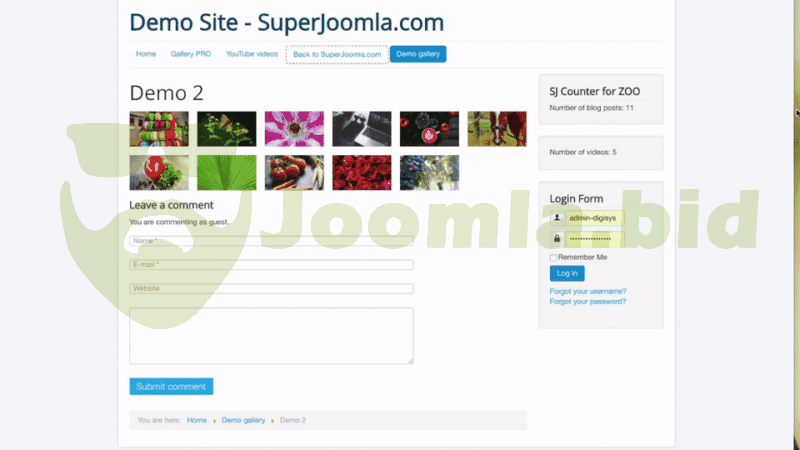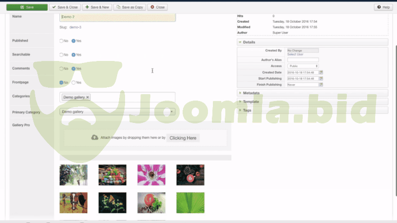 You can manage your gallery inside the ZOO item. No need to creating folder, upload images, and than connect the folder to gallery layout. Now you can EASY upload images with drag-n-drop. Re-order images. Delete images. An all this inside your ZOO item edit. And you can do all of this even in FRONTEND.