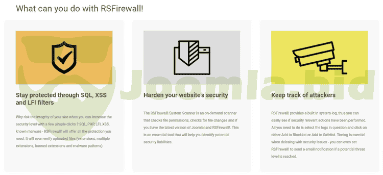 RSFirewall! is the most advanced Joomla! security extension, developed by us at RSJoomla!, that you can use to protect your Joomla! website from intrusions and hacker attacks. It's backed up by a team of experts that are trained to be always up to date with the latest known vulnerabilities and security updates, making RSFirewall! the best choice in keeping your website safe.