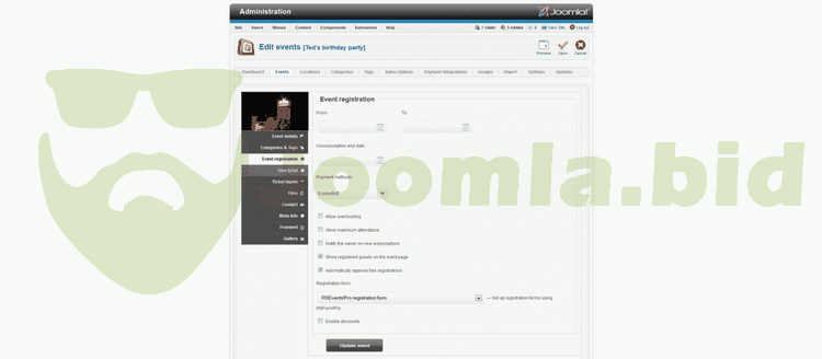 RSEvents Pro - incl (Modules, Plugins, 3rd Party, & Languages). takes Joomla! event management a step further and comes with built-in solution for all related aspects such as visibility, social sharing and communication, calendar, registration, booking, SEO and of course, payment. You can also import events from CSV files, your Google calendar and even Facebook. Read below for just a sample of the features and functionality available in this RSJoomla! solution:
