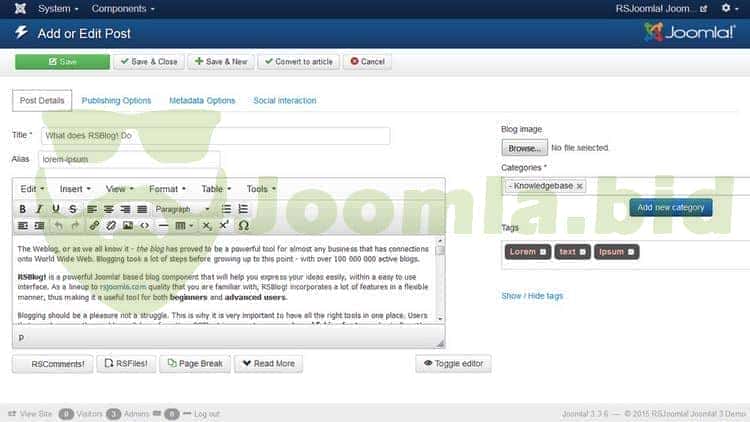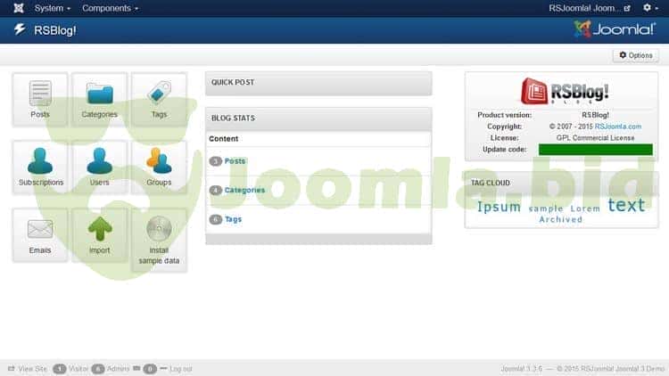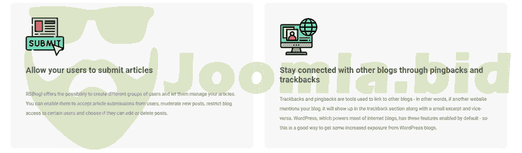 RSBlog! makes Joomla! blogging easy with a set of tools that will help you start and maintain your very own blog. One of the key features available is the Remote publishing feature, this will allow you to keep your blog updated even when you are on the road, all it takes is sending an email.