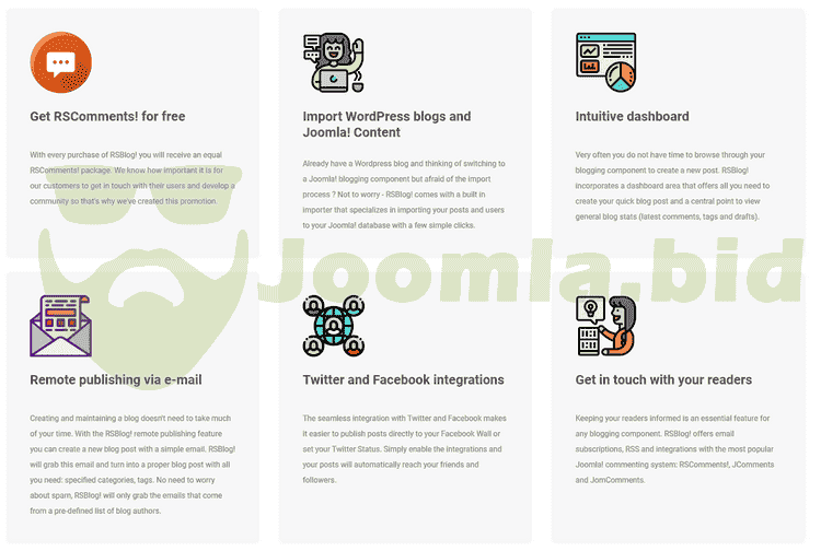 You can also easily share your blog posts on the most popular social media channels: Facebook and Twitter. These are only a few of the powerful features available in our component.