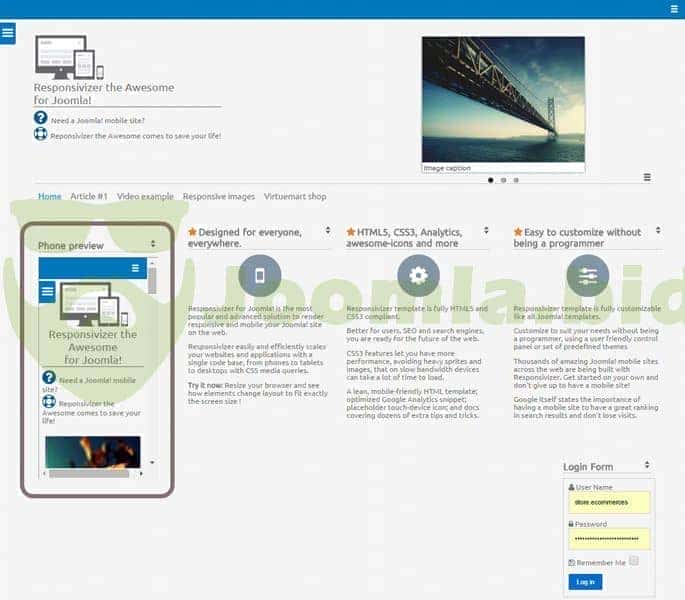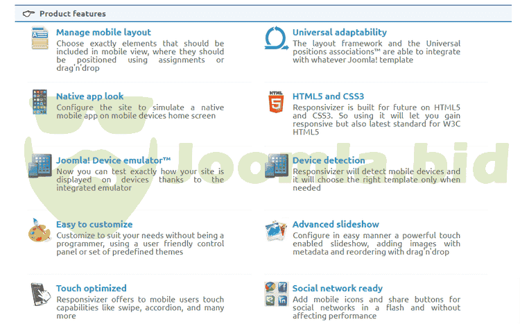 Responsivizer the Awesome is the definitive full stack solution to make MOBILE RESPONSIVE your Joomla! site in few easy steps. It's the cheapest, complete and easy solution to have a mobile and responsive website, so GO MOBILE NOW! Responsivizer is quoted as 'the professional solution' to make mobile and responsive your Joomla! website. Building a mobile version of your site has never been so easy, and no more need to start a new site from scratch!