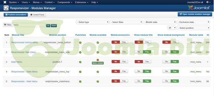 You can render responsive Joomla! menus to suit perfectly on mobile devices to use a touch screen. You can choose from dropdown style or accordion style up to 4 different positions and responsive styles