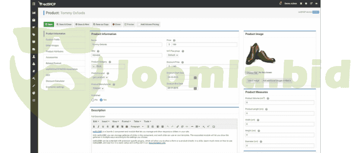 Now with more than 100 extensions, modules and plugins + even more 3rd party extensions and support from the template clubs Rockettheme, Gavickpro, Joomlabamboo! Try the demo and check out redSHOP and all of the ecommerce features here: https://redshop.demo.redcomponent.com This is the most advanced webshop system ever created for Joomla - It is light years ahead of any other webshop or cart component for Joomla.