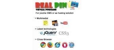 Realpin is a native component for Joomla, that provides a virtual pinboard for your website. Let your friends add postits, pictures or even youtube videos. Everything packed into a realistic design.