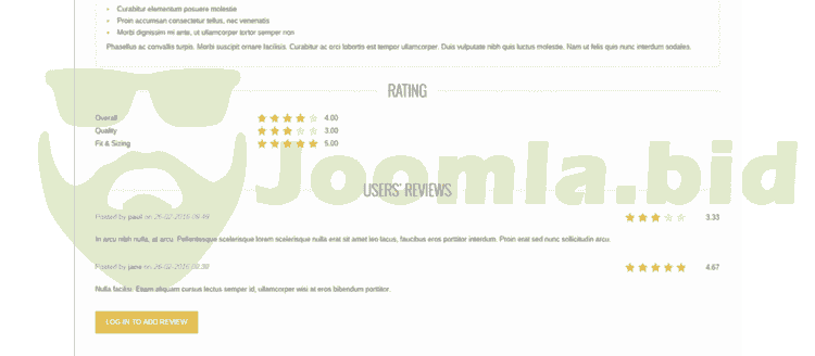 The rating and reviews extension is integrated with Joomla Articles, DJ-Classifieds (ads and users), J2Store products, and DJ-Catalog2 products.