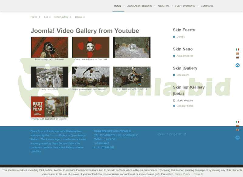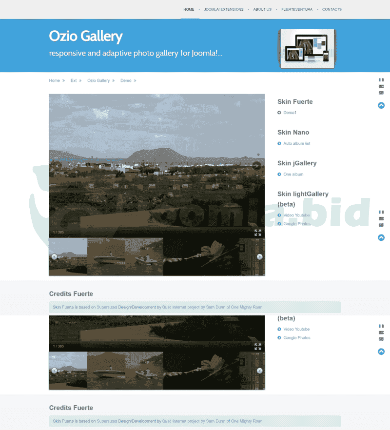 Ozio Gallery is a responsive photo and VIDEO gallery designed for Joomla, written in javascript which shows images published ONLY on Google Photos personal profile and video from YouTube. All your images and video are cloud hosted and automatically scaled using hi-quality settings.